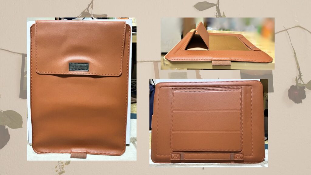 - 高さ8cmのスタンド機能(レザーにマグネットが内臓されているためパソコンを乗せても潰れることはない